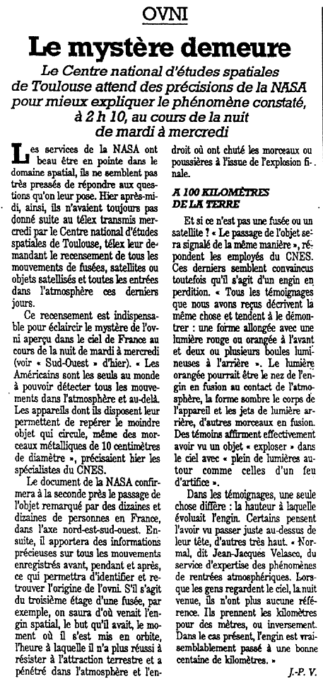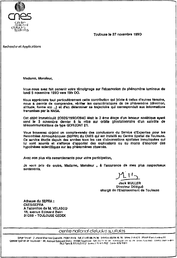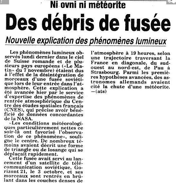10 novembre 1990 : Le SEPRA identifie la rentrée atmosphérique