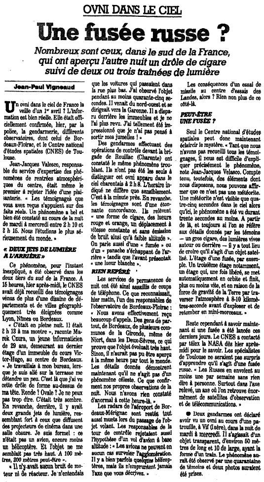 rares aérospatiaux (Cepra au CNES) n'écarte aucune hypothèse.