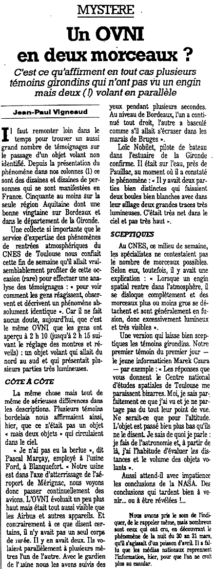 8 février 2003 : Un morceau de navette à Tibiran-Jaunac ?