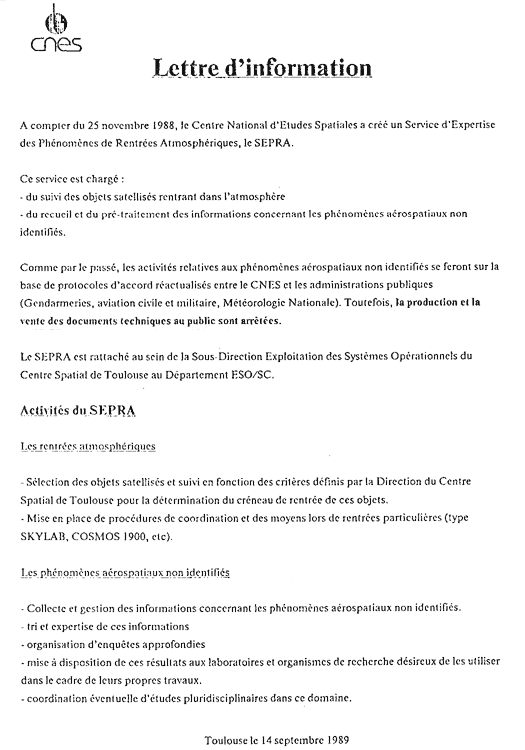 Le SEPRA reprenait donc en grande partie les activités du GEPAN (Groupe