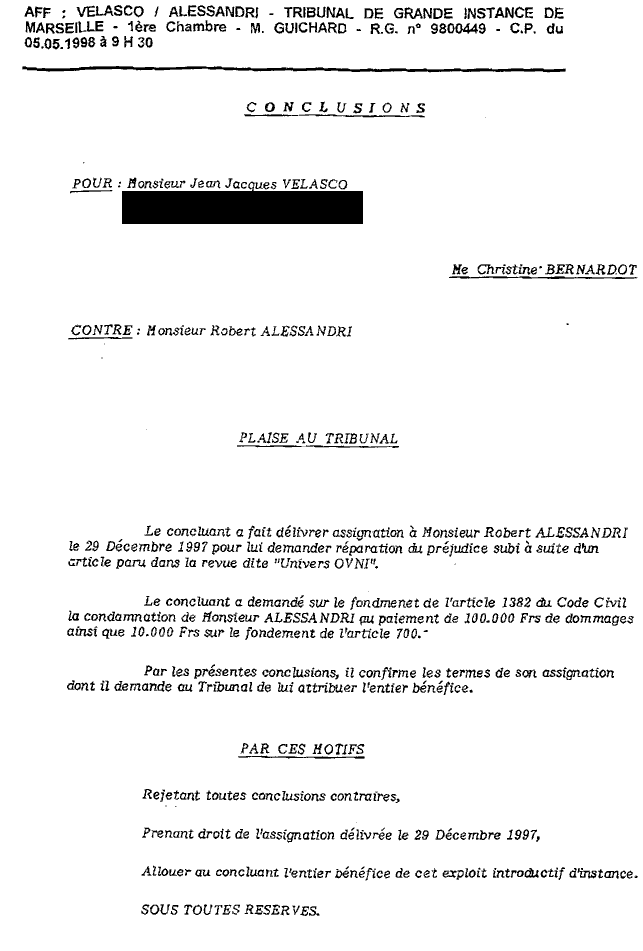Comparez avec cette phrase extraite de l'assignation : « Il est constant que