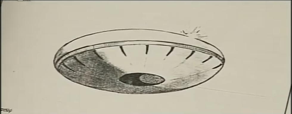 courte distance de son avion, planait le mystérieux objet volant d'environ 2 mètres de diamètre, similaire à une bulle de mercure, sans ailes ni queue, ni