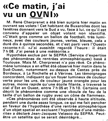 10 novembre 1990 : Le SEPRA identifie la rentrée atmosphérique