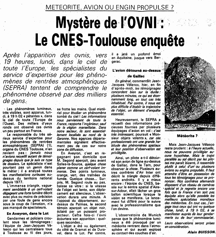 rares aérospatiaux (Cepra au CNES) n'écarte aucune hypothèse.