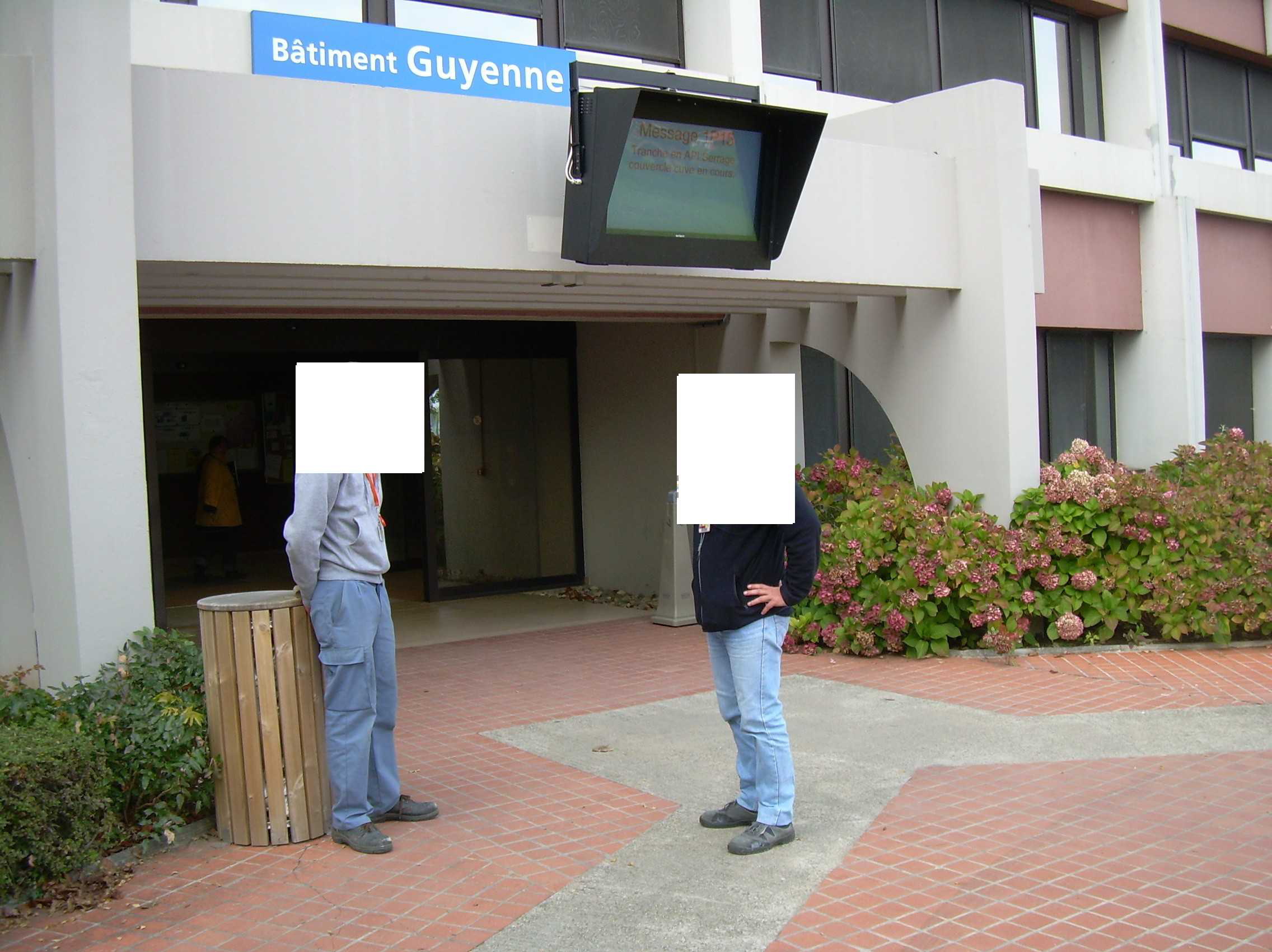 Mercredi 6 octobre 20 h 15 mon collègue et moi décidons de nous accorder une petite pause cigarette. Nous sommes dehors, il est