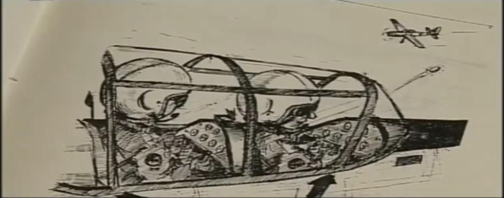 Ensuite, pour qu'ils puissent suivre ensemble les évolutions du mystérieux objet volant, il déphasa le vol de son avion de 180° par rapport à celui du